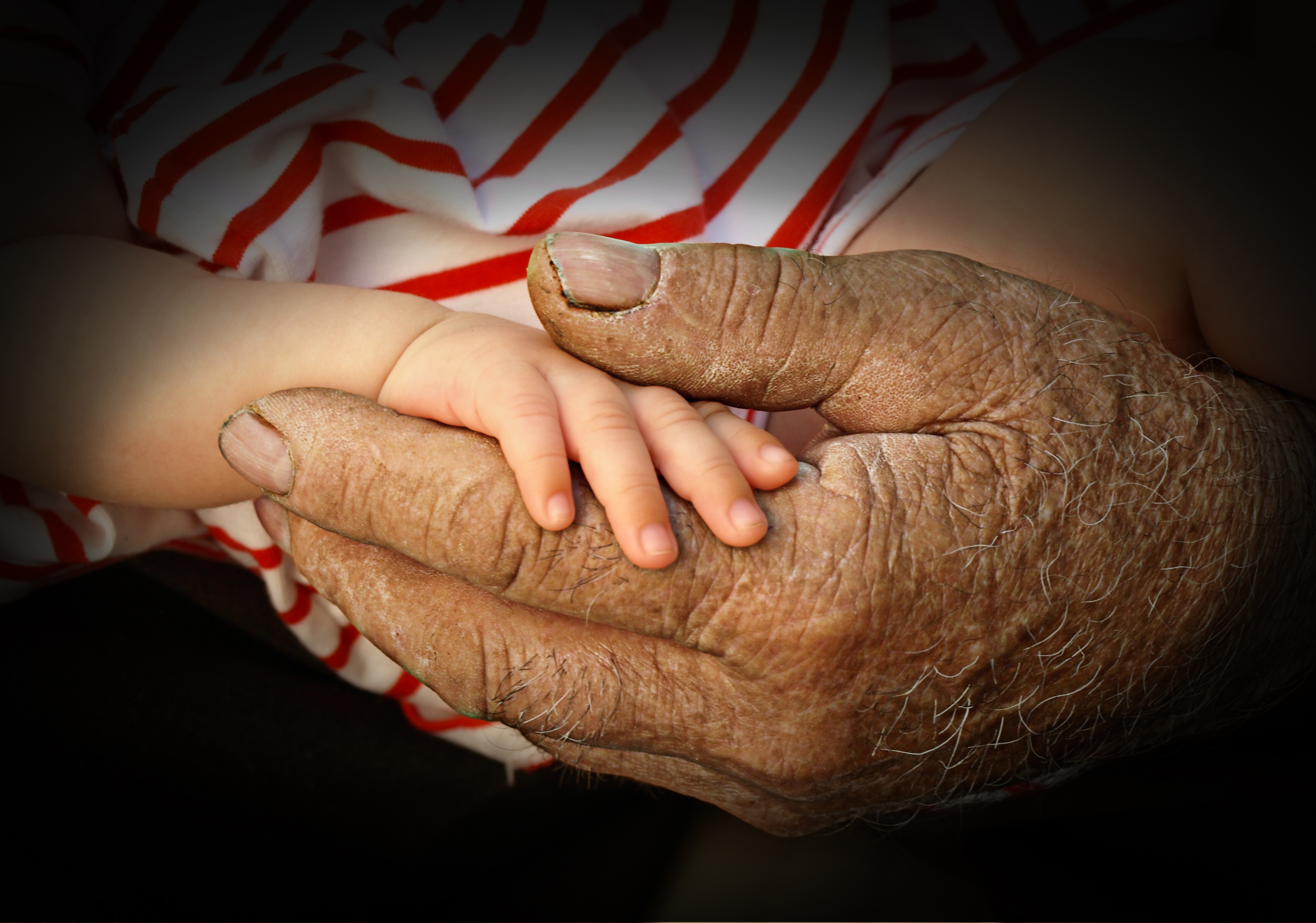 La ternura con las que las manos castigadas del Bisabuelo acarician a su biznieta el día que por fin la conoce, recuerdo imborrable.