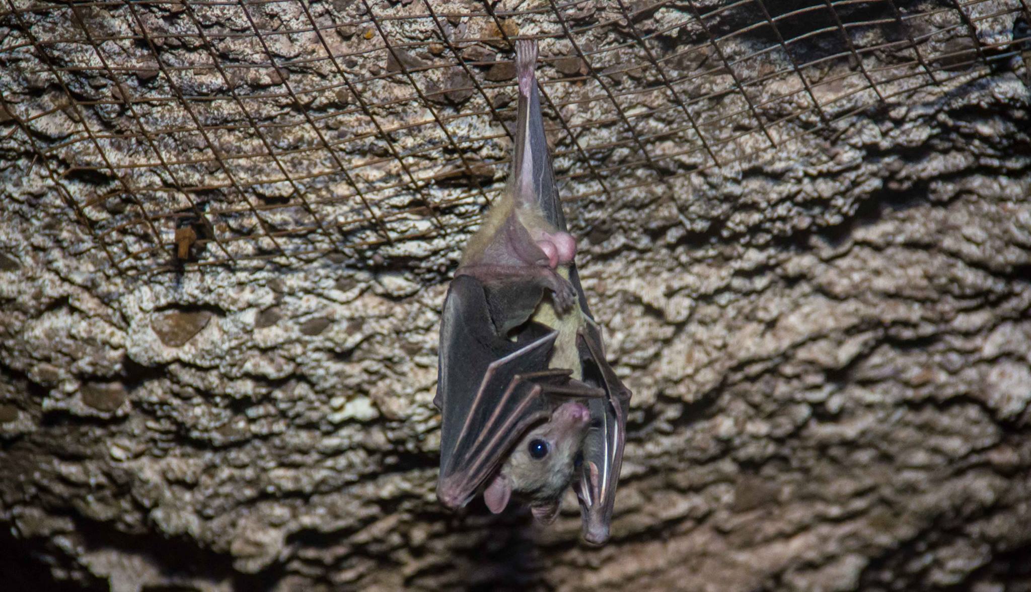 Foto tomada en una cueva artificial para que habiten estos curiosos animales nocturnos.
