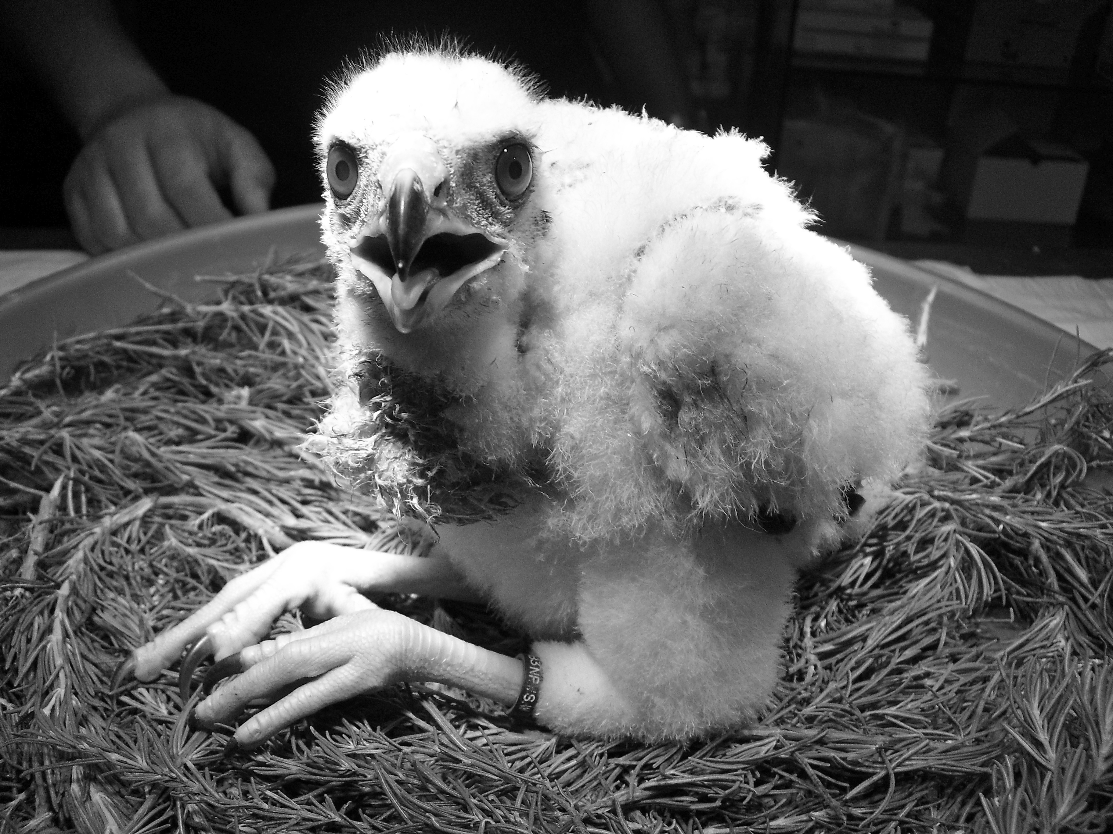 Un pollo de águila sabe como atraer la atención cuando entra en una clínica