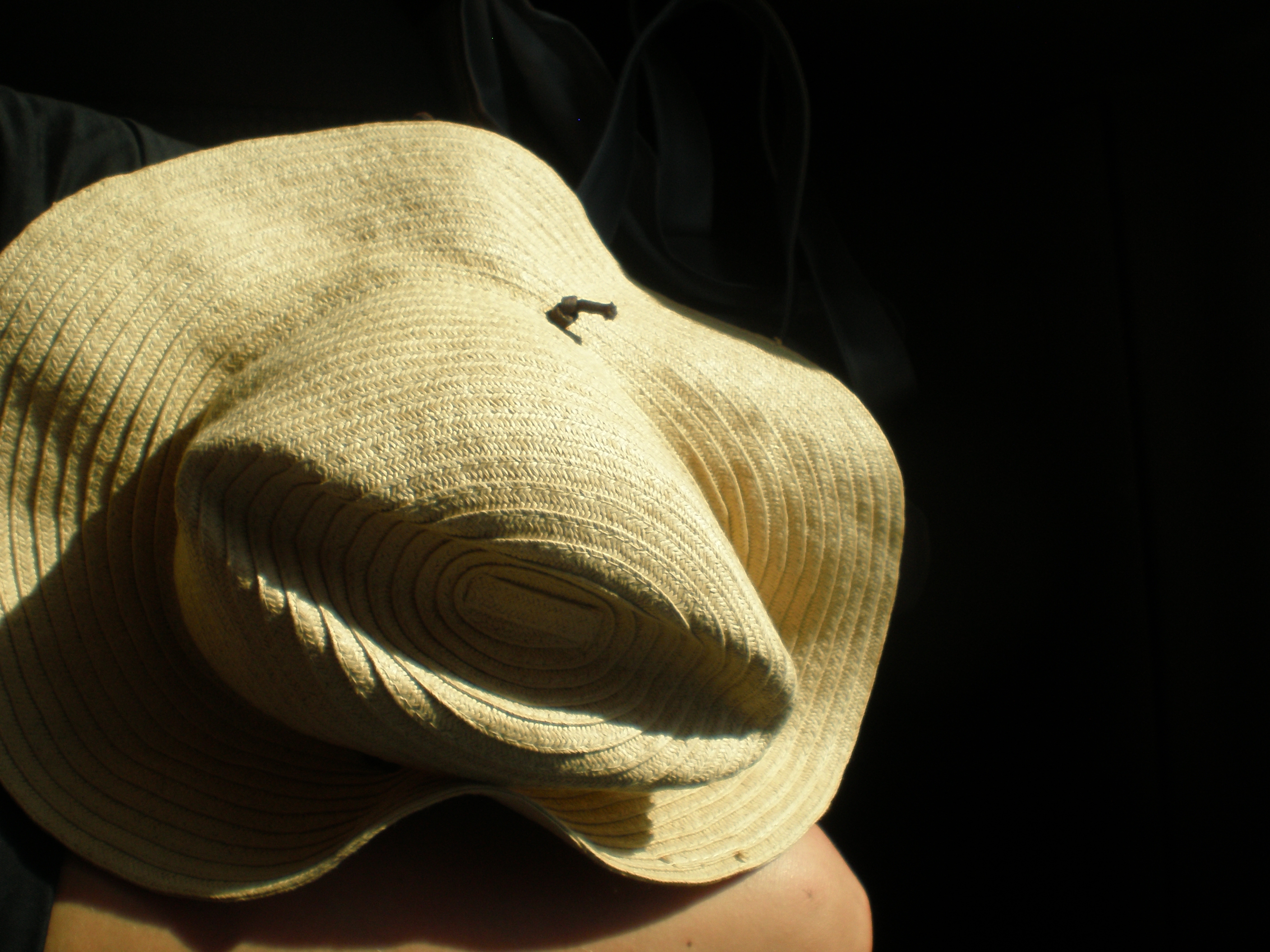 Fotografía de una mujer de espalda con sombrero de mimbre