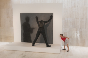 El título de esta obra no puede ser más apropiado. Y lo es en su doble acepción. ‘Pillado’ es ser sorprendido y reaccionar de forma brusca ante algo inesperado. Los increíbles ojos bien abiertos del animal y el propio escorzo, complicado escorzo que exhibe, así lo expresa. Pero ‘pillado’, en su forma más coloquial también implica cierto grado de locura y esa mirada, con ese torso girado hacia quien capta su atención mientras el tren inferior permanece relajado, en posición de seguir recostado, bien refleja corporalmente esa actitud tan poco cuerda.
