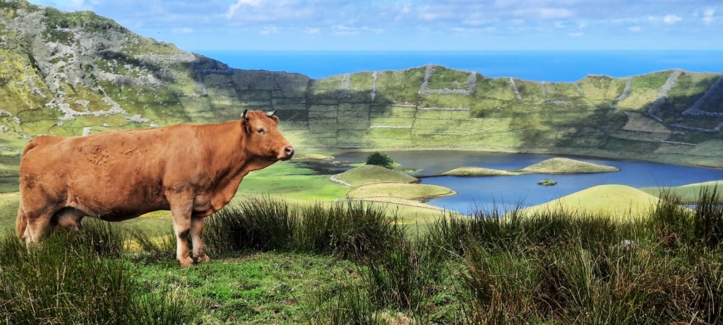 Observación atenta y detenida de un paisaje tranquilo y placentero. Cráter de Caldeirao en la isla de Corvo, Azores.