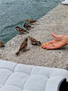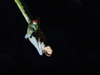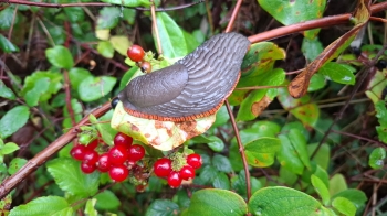 El autor logra, con una mirada atenta y cercana, convertir a una babosa en caminante del Camino de Santiago, símbolo de esfuerzo, constancia y paciencia. La composición resalta la textura de su cuerpo y el contraste de colores entre el gris de la babosa, el borde anaranjado de su pie y el rojo intenso de las bayas que la rodean, aportando un gran atractivo cromático a la imagen.