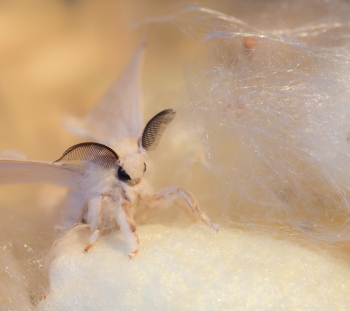 La imagen logra captar con extraordinaria nitidez y cercanía la belleza del Bombyx mori, insecto de enorme relevancia histórica y cultural, fuente de la seda que durante siglos ha marcado el progreso económico y social de civilizaciones enteras. La mirada frontal y el detalle de sus antenas plumosas resaltan tanto la delicadeza como la majestuosidad de un animal aparentemente pequeño, pero de impacto universal.