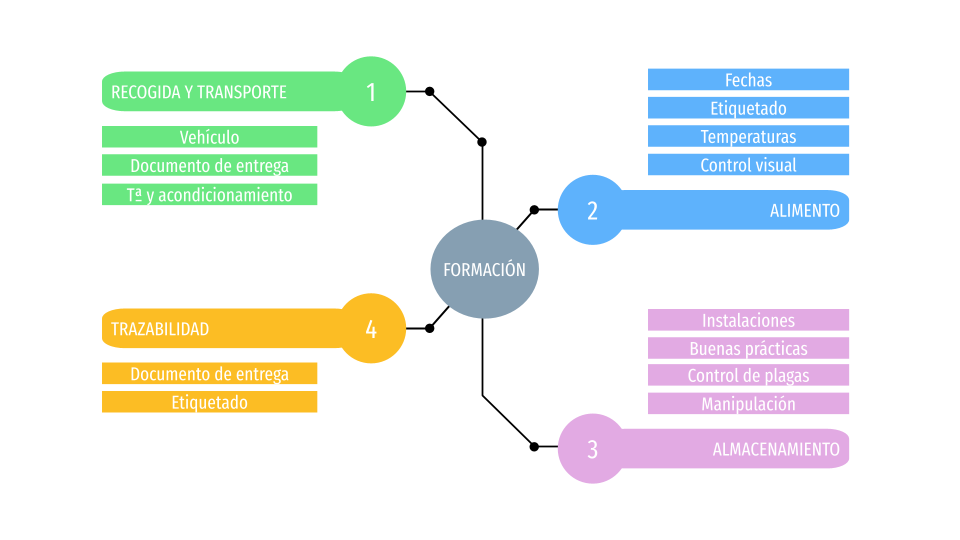 Fase de implementación del asesoramiento, con sesiones formativas, visitas técnicas a las sedes de las entidades, elaboración de manuales de higiene y modelos de registros de trazabilidad, albaranes y etiquetado.